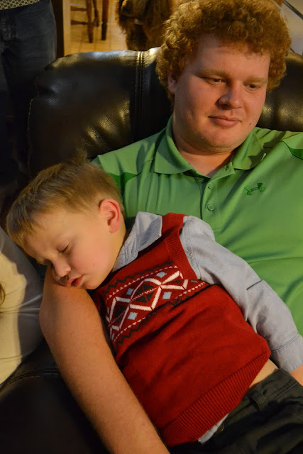 Poor T slept through dinner AND the presents.